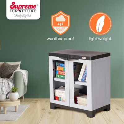 The Supreme Furniture Fusion 01 FG Plastic Cabinet in Charcoal & Sky Grey is a compact and stylish multipurpose storage cupboard with see-through glass panels, ideal for adding organized utility and modern flair to your living room, kids’ room, study, office, or kitchen. Made from high-quality virgin plastic with transparent glass accents, this unit combines durability with a sleek design that’s both dustproof and rustproof, ensuring long-lasting performance with minimal upkeep. The see-through glass fronts make it easy to display and access books, décor, crockery, or collectibles, while the spacious internal shelves keep items neatly organized and protected. Lightweight and easy to assemble (DIY), this cabinet fits comfortably in compact spaces and adds functional storage without overwhelming your décor — blending practicality and contemporary style for everyday use.
