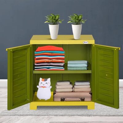 The Supreme Furniture Fusion 01 Multipurpose Waterproof Cabinet is a compact and versatile storage solution designed to keep your home organized while adding a pop of color to any room. Made from durable, weather-resistant plastic, this cupboard features 2 doors and an adjustable internal shelf, letting you neatly store a variety of items like clothes, accessories, books, toys, linens, or daily essentials — making it ideal for living rooms, kids’ rooms, studies, or even outdoor seating areas. Its lightweight yet sturdy build is easy to assemble (DIY) and simple to clean, so regular maintenance is hassle-free. The vibrant Mehndi Green/Lemon Yellow finish adds fresh, playful style to your space, while the compact design ensures it fits comfortably in smaller corners without overwhelming the décor. A practical and dependable choice for everyday storage needs around the home.