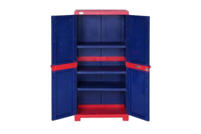 Supreme Furniture Fusion Kids Senior Waterproof with 2 Doors & 3 Shelves Cupboard/Cabinet Living Room and Kids (Medium Size, Coke Red/Blue)