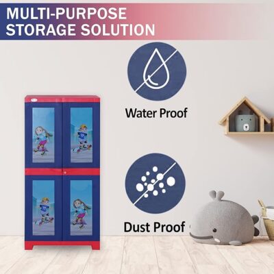 The Supreme Furniture Fusion Kids Senior Waterproof Cabinet is a medium-sized, multipurpose plastic cupboard designed to bring organized storage and everyday convenience to your living room, kids’ room, bedroom, study, or home office. Made from durable, waterproof, and termite-resistant virgin plastic, this storage cabinet features two doors and three adjustable shelves, offering flexible space to neatly store clothes, books, toys, bedding, and other household essentials while keeping them protected from dust and moisture. Its vibrant Coke Red and Blue finish with decorative front panels adds a playful yet stylish touch to interiors, while the robust build delivers reliable performance for daily use. The cabinet is easy to assemble (DIY) and requires minimal maintenance thanks to its smooth, wipe-clean surface, making it an excellent storage solution for busy homes with children and adults alike.