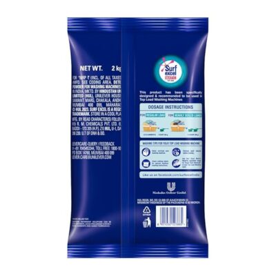 Surf Excel Matic Top-Load Detergent Powder – 2 kg is a powerful laundry cleaning solution specially formulated for top-load washing machines. Its advanced stain-removing formula targets tough, set-in stains and effectively lifts dirt, grime, and marks from clothes, leaving them clean, bright, and fresh after every wash. Designed to dissolve easily in water, it ensures uniform cleaning without residue and helps maintain fabric quality and color. Ideal for everyday laundry, Surf Excel Matic Top-Load delivers superior cleaning performance you can trust for your family’s garments.