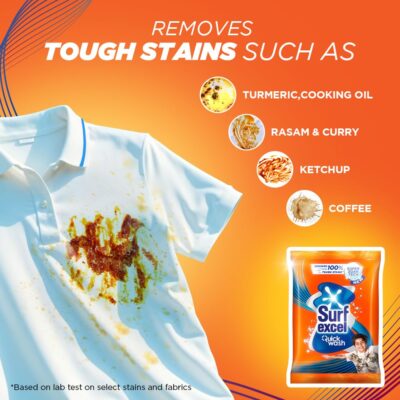 Surf Excel Quick Wash Detergent Powder 1 kg, Washing Powder with Lemon & Bleach to Remove Tough Stains on Clothes - Bucket & Machine Wash