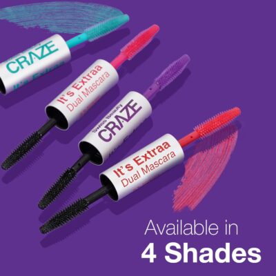 Swiss Beauty Craze It’s Extraa Dual Mascara in the shade Red Flag delivers vibrant red-toned black colour with enhanced lash length and curl.