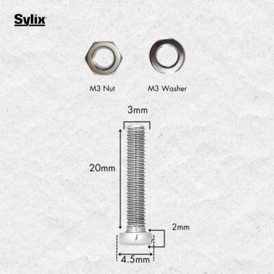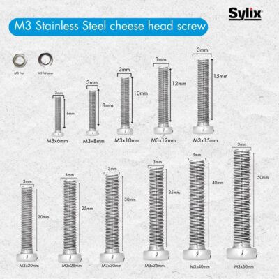 Be the first to review “SYLIX M3 x 20mm Stainless Steel Cheese Head Slot Machine Screw, Nut & Washer Set (30 Pcs)”