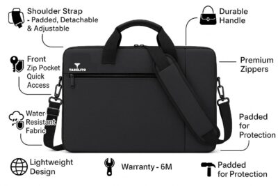 The Tabelito 15.6 Inch Laptop Bag is a practical and stylish briefcase-style messenger bag designed to protect and carry your laptop and essentials with ease. Made from durable, water-resistant exterior fabric and featuring a soft padded interior, it helps safeguard your device from light rain, splashes, and everyday wear while your laptop stays cushioned from bumps and impacts. It includes a dedicated laptop compartment that fits up to 15.6-inch laptops, along with extra pockets for accessories like chargers, cables, documents, and small gadgets — helping you stay organized on the go. The bag also offers multiple compartments, an adjustable shoulder strap, and a comfortable handle, making it suitable for daily commute, office, travel, school, or college use. With its sleek unisex design and lightweight build, this laptop briefcase blends functionality, protection, and convenience for everyday professionals and students alike.
