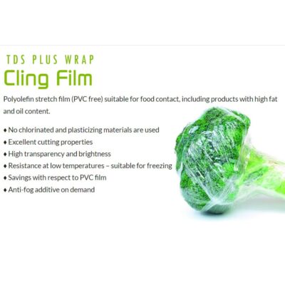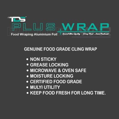 TDS PLUS WRAP Cling Film Wrap (500 Meters, Pack of 1) is a high-quality, biodegradable and BPA-free food wrapping solution designed for safe, hygienic, and multipurpose use. Made from food-grade material, this non-stick cling film provides excellent stretch and strong cling to securely wrap fruits, vegetables, leftovers, cooked meals, and food containers. Its transparent finish allows easy identification of contents while helping retain freshness and prevent contamination. Ideal for homes, restaurants, hotels, and catering services, the long 500-meter roll offers great value and reliable performance for everyday food storage and professional food handling needs.