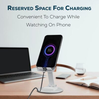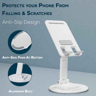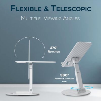 TEMPT Flexi Pro Mobile Stand with 360°Rotatable & Height Adjustable, Portable and Foldable Mobile Stand with Stable Base, Mobile Holder for Smartphones, Tablets (White)