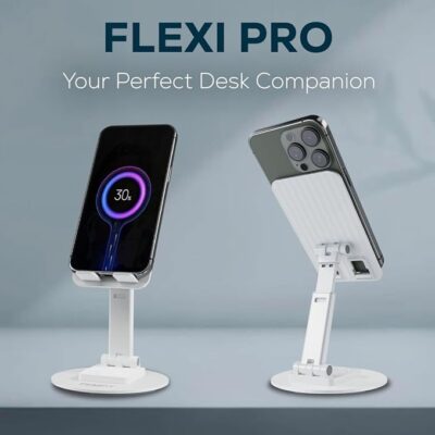 The Tempt Flexi Pro Mobile Stand is a versatile and ergonomic mobile and tablet holder designed to make everyday hands-free viewing more comfortable and convenient. It features a 360° rotatable head that lets you effortlessly switch between portrait and landscape modes and find the perfect viewing angle for video calls, watching content, reading, or browsing. The stand also offers adjustable height and angle settings so you can personalize the setup to suit your posture and desk setup, helping reduce strain during prolonged use. Built with a stable base and anti-slip pads, it keeps your device secure on flat surfaces and prevents unwanted sliding or scratches. Its portable and foldable design makes it easy to carry in a bag or backpack, making it ideal for home, office, classroom, or travel use. With universal compatibility across most smartphones and tablets (typically from ~4″ to ~9.8″), this stand combines functionality, flexibility, and convenience in a compact form that enhances your hands-free experience wherever you need it.