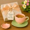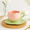 The Deluxe Creations Tulip Shaped Ceramic Cup & Leaf Saucer Set – Pink, 275ml | Handmade Tea/Coffee Mug | Rakhi Gift for Sister | Microwave Safe | Elegant Gift Set for Home & Kitchen