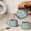 The Earth Store Premium Grey Glaze Ceramic Morning Tea Set - 2 Tea Cups & 1 Kettle Microwave and Dishwasher Safe | Tea Cup with Kettle | Small Morning Set | Ideal for Gifting and Daily Use