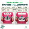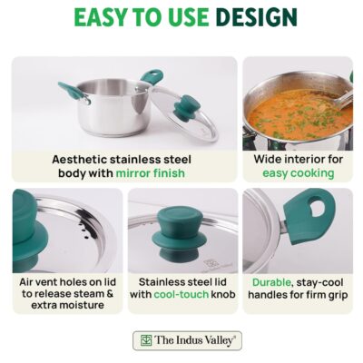 Perfect for both induction and gas cooktops, this multipurpose pot is ideal for Indian and international dishes alike – from biryani, halwa, fish curry, paneer, dal, to sautéed vegetables. With easy cleaning, elegant finish, and efficient cooking performance, it is a must-have cookware for every modern kitchen.