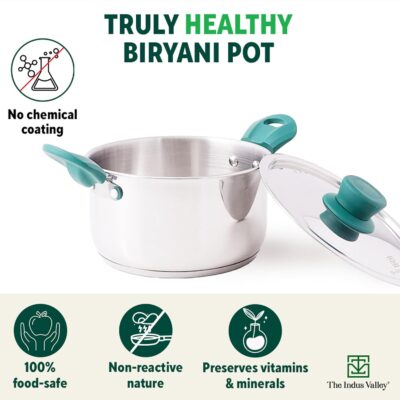 Cook, serve, and enjoy healthier meals with The Indus Valley Stainless Steel Stock Pot / Handi / Cook-N-Serve Bowl. Built with premium food-grade stainless steel, this 2-litre handi is 100% toxin-free, free from harmful chemical coatings, and safe for daily cooking.