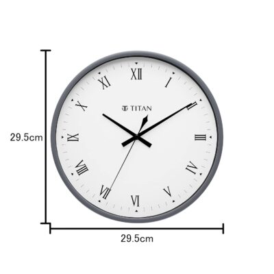 The Titan Plastic Classic Grey Wall Clock combines a sleek round plastic frame with a modern grey finish, measuring 29.5 × 29.5 cm for balanced wall presence. Its silent sweep mechanism ensures whisper‑quiet operation, creating a peaceful setting in living rooms, bedrooms, or offices. Bold yet refined Arabic numerals and slender hands offer excellent readability at a glance. Lightweight, battery-operated, and featuring minimal design, it reflects Titan’s harmonious blend of form and function.