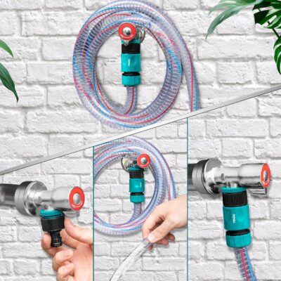 Crafted from sturdy ABS plastic (with TPR for insulation in some components), the set includes a 1/2″ quick connector with an integrated water-stop valve, an additional 1/2″ standard quick connector, and a versatile tap adaptor that accommodates both 1/2″ and 3/4″ outlets.
