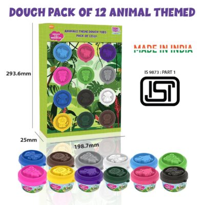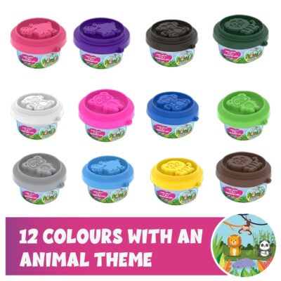 ToyMagic Animal Themed Clay/Soft Water Based FunDough with 2 in 1 Moulding Lid Pack of 12 Tubs 25gm Each|Fun with Dough|Non-Toxic|Kids 3+|Art & Craft Activity|Birthday & Return Gifts|Made in India