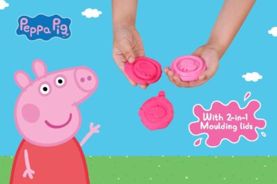 This set includes 8 tubs of 50g soft, water-based dough, each featuring a 2-in-1 Moulding lid that lets kids easily create Peppa Pig-themed shapes and designs. Made from non-toxic and safe materials, it is suitable for kids aged 3 years and above.