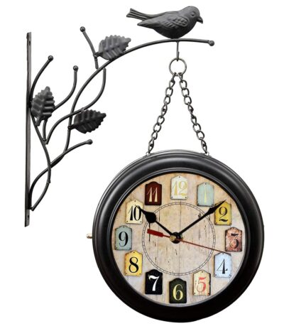 Be the first to review “Traditional 25 Cm Vintage Double Sided Antique Station Clock With Black Bird Round Metal Body (Design Ant12) – Analog”