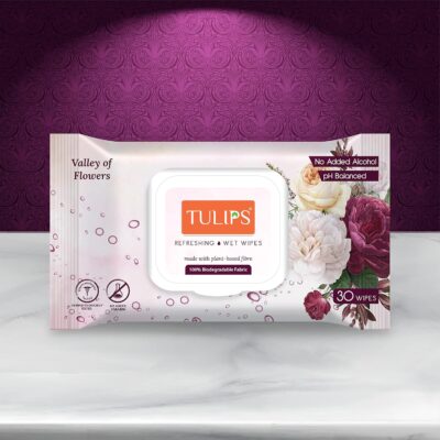 Tulips Refreshing Makeup Remover Wet Wipes are crafted for gentle and effective facial cleansing.