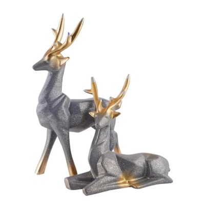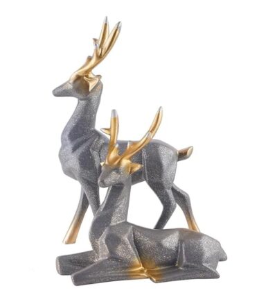 Elegant grey resin deer couple showpieces for living rooms, offices, and table décor — perfect for modern homes and gifting.