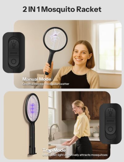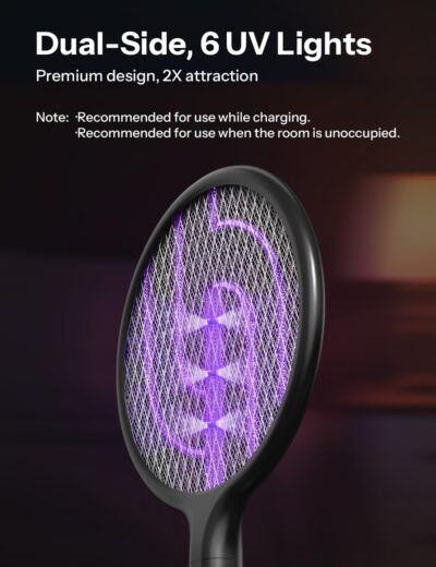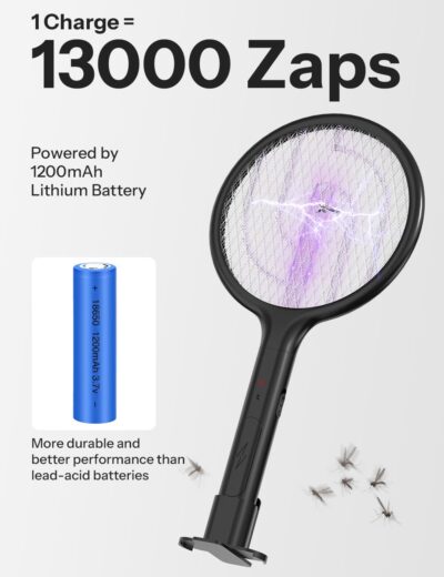 Experience powerful mosquito control with the UN1QUE 2-in-1 Electric Mosquito Racket, designed for both handheld and stand-mode operation. Equipped with 6 UV lights, it effectively attracts and zaps mosquitoes, while the 1200mAh lithium-ion battery delivers up to 13,000 zaps on a full charge. Use it as a fly swatter or place it on the base stand for automatic mosquito trapping. Suitable for homes, bedrooms, balconies, and outdoor spaces, this bug zapper ensures quick, safe, and efficient mosquito elimination. A premium choice for all-round protection.