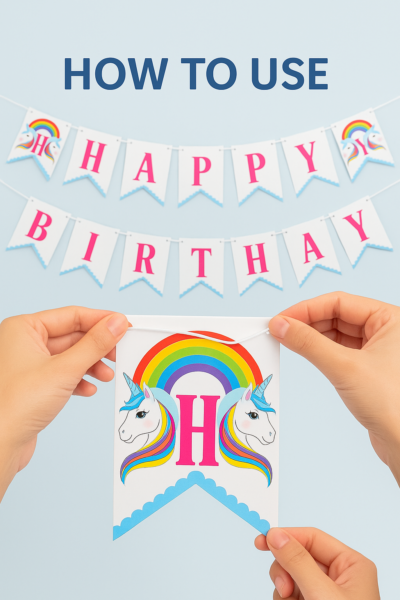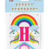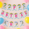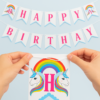 Add a touch of magic to your celebrations with the Unicorn Rainbow Happy Birthday Banner, a vibrant and playful decoration designed for children’s birthday parties. Each banner flag showcases colorful rainbows, clouds, and charming unicorn illustrations, along with bold pink letters that spell out “HAPPY BIRTHDAY.”