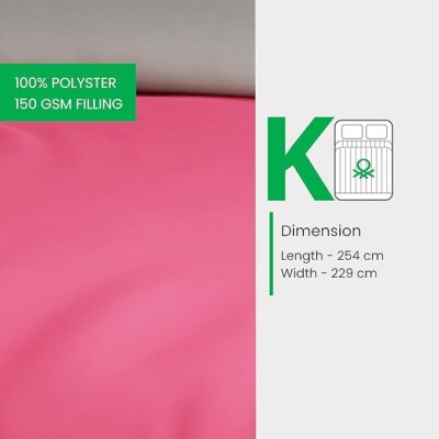 Wrap your bed in vibrant style and supreme comfort with this reversible comforter from the iconic brand United Colors of Benetton. Sized at 254 × 229 cm (Queen/Double), it offers generous coverage for your bed. The 150 GSM fill weight ensures a light-and-airy feel—ideal for air-conditioned rooms, mild winters or as an all-season quilt. Crafted from ultra-soft microfiber, the fabric gives a silky-smooth touch while remaining breathable and easy to care for. The reversible design adds versatility to your bedroom décor: simply flip the comforter to change the look and match your mood or styling. With reliable brand quality, this comforter fuses smart functionality (lightweight, long-lasting, machine-washable) with signature style—making it a smart pick if you’re looking to upgrade your bedding with something both chic and practical.
