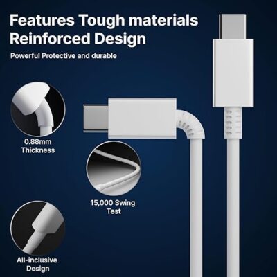 USB-C to Type-C Fast Charging Cable is designed to deliver reliable power and high-speed data transfer for all your modern devices. Built with advanced fast-charge support, this cable ensures quick and stable charging for Samsung Galaxy M35, M15, F15, A15, A14, M14, F14, M34, F34, A34 and flagship S-series models including S21 FE, S22, S23, S24, S25, FE, Plus and Ultra, as well as compatible tablets. The durable, tangle-free construction offers long-lasting performance, while the reversible USB-C connectors make plugging in effortless every time. Ideal for charging, syncing, and data transfer, this cable is a perfect everyday companion for home, office, or travel use.
