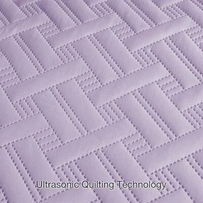 The bedcover uses ultrasonic quilting (instead of traditional stitch quilting), improving durability, keeping the fill even and providing a refined, modern finish.