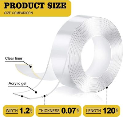 The Vasukie Double-Sided Heavy-Duty Tape is a multipurpose mounting adhesive designed for strong, secure, and damage-free fixing on walls and smooth surfaces. This 3-meter roll with 2 mm thickness offers excellent holding power while remaining removable, washable, and completely traceless, ensuring no residue or paint damage upon removal. Made from high-quality reusable gel material, it provides a firm anti-slip grip for mounting décor items, organizers, photo frames, tools, and household accessories. Easy to cut and apply, the Vasukie Nano Grip Tape is a reliable and convenient alternative to nails and screws for home, office, and DIY use.