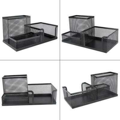 The VAVSU Mesh Pen Holder is a sleek 3-compartment metal organizer for pens, pencils, and stationery. Perfect for office, home, or school desks.