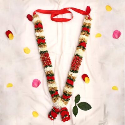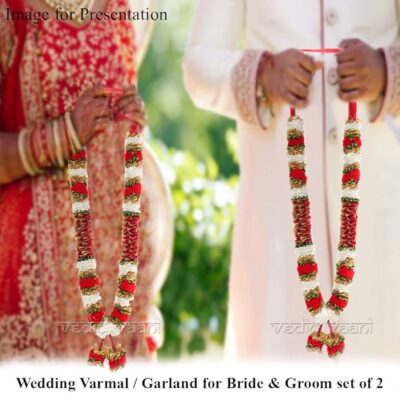 The VEDIC VAANI Artificial Wedding Garland Set features a beautiful pair of 24-inch red garlands crafted to add grace and tradition to your special occasions. Perfect for the bride and groom during the Varmala or Jaimala ceremony, these garlands offer the rich look of fresh flowers with the long-lasting durability of high-quality artificial materials. Their vibrant red color and detailed floral design make them ideal not only for weddings but also for engagements, anniversaries, poojas, and other auspicious events. Lightweight, reusable, and visually striking, this multipurpose garland set enhances the elegance and cultural charm of every celebration.