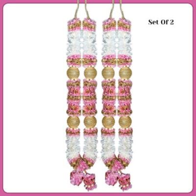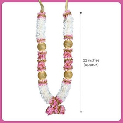 VEDIC VAANI Wedding Varmala for Couples, Garland Mala for Groom and Bride, Jaimala, Artificial Flower Garland (Set of 2) (Light Pink), 22 Inches