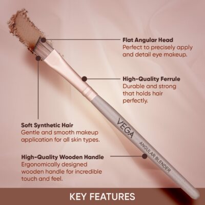 Vega Angular Blender for Eye Liner features an angled brush head that delivers precise control for applying eyeliner and shaping brows.