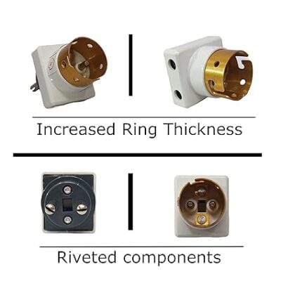 VEYRON Bulb Holder with Plug Socket is designed to convert standard socket connections into secure bulb hold-outs for decorative lighting projects. Featuring a 2-pin parallel adapter, it allows easy and flexible connectivity between plugs and bulb holders. The adapters are crafted from durable, heat-resistant materials to ensure safe usage during regular operation. Ideal for home décor, festivals, and event lighting, it supports stable electrical performance for compatible bulbs. Its practical design makes installation quick and user-friendly without the need for complex wiring. This pack of 2 provides a cost-effective solution for multiple lighting conversions.