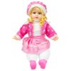 Made from soft plush fabric, she comes dressed in a cute jacket, colorful skirt, and matching cap — all crafted for comfort and safety. Her realistic features, golden braids, and expressive face make her look just like a real baby, encouraging pretend play and emotional bonding.