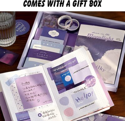 The VIBE VISTA Vintage Aesthetic Scrapbook Kit is a comprehensive 346-piece crafting set designed for art journaling, scrapbooking, and creative DIY projects. This kit includes an A6 grid notebook, washi tapes, envelopes, scrapbook papers, folding labels, background papers, photo frames, calendar stickers, and a variety of decorative stickers in the elegant Moon Light theme. Perfect for personalizing journals, planners, or photo albums, it allows users to craft visually stunning pages with a vintage aesthetic. Ideal for teens and adults, the kit encourages creativity, organization, and artistic expression, making it a thoughtful gift for anyone who loves journaling, crafting, and paper art.