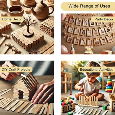 The big size and sturdy thickness make these craft sticks ideal for DIY projects, arts and crafts, school activities, kids’ crafting, model making, and creative house-building projects.