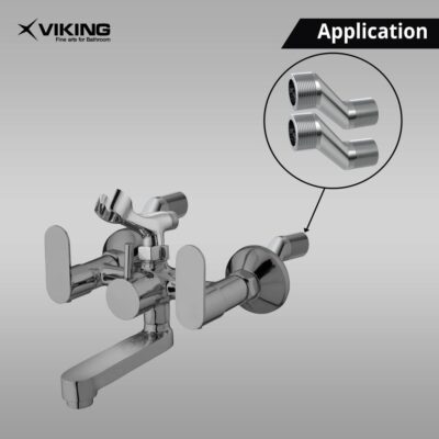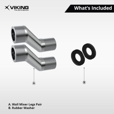 The Viking Brass Wall Mixer Legs (Pair) are expertly crafted plumbing accessories designed to ensure secure, leak-free connections for your bathroom wall mixers. Made from high-quality solid brass and finished with a premium chrome plating, these mixer legs provide excellent corrosion resistance, durability, and a stylish appearance that complements any modern bathroom décor. Featuring 20mm (3/4″) and 15mm (1/2″) outer threads, they are precisely engineered for perfect alignment and compatibility with most standard wall mixer fittings. The smooth surface and fine threading allow for easy installation and reliable water flow control. Designed for long-lasting performance and maintenance-free operation, the Viking Brass Wall Mixer Legs deliver strength, precision, and elegance in every detail — making them a trusted choice for both professional plumbers and homeowners.