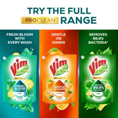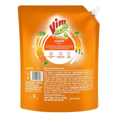 Vim ProClean Dishwash Liquid Gel with Tangerine – 1700 ml is a powerful and refreshing dishwashing liquid gel designed to make your kitchen cleaning easy, effective, and pleasant. Formulated with tangerine-infused active ingredients, this gel delivers strong grease-cutting performance that tackles tough grease, stubborn food residues, and lingering odors with ease. Its advanced formula helps leave your utensils sparkling clean and fresh smelling after every wash.