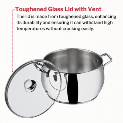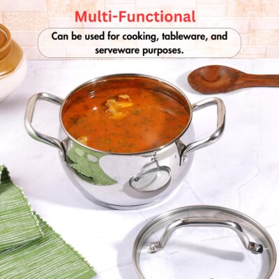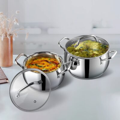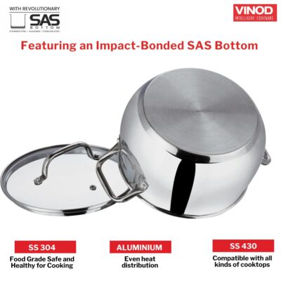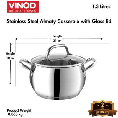 Be the first to review “Vinod Almaty Stainless Steel Saucepot with Glass Lid | 1.3 Litre, 14 cm | 2.6 mm Thick Base | Induction & Gas Compatible | Riveted Handle | 2 Year Warranty”