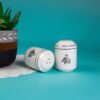 The VOLA Gaj Series Salt & Pepper Shakers feature a premium ceramic design with a platinum rim and elegant elephant motif. Adjustable coarseness and luxurious styling make them perfect for home, office, or gifting.