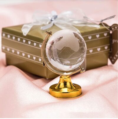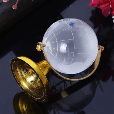 Crystal globe paperweight and Feng Shui décor piece for office, study table, and home — believed to support intelligence, success, and business growth.