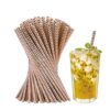 Wanna Party 24 PCS Rose Gold and White Zig Zag Paper Straws, Biodegradable Disposable Drinking Straws for Brithday, Wedding,Pool Party, Picnics, Carnival Decoration Supplies
