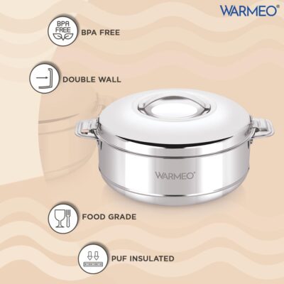 WARMEO Steam Insulated Stainless Steel Casseroles| Easy to Carry Hot Boxes for Kitchen | Hot Food, Easy to Store| Silver|2500ml