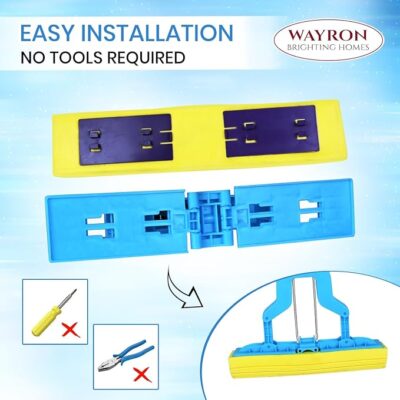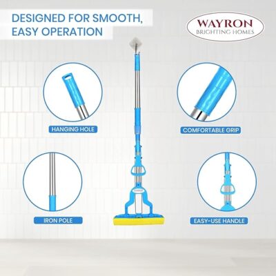 The WAYRON Butterfly Sponge Mop with Stainless Steel Handle is a practical and efficient floor-cleaning tool designed for everyday use across homes, kitchens, bathrooms, and offices. Equipped with a super-absorbent PVA sponge head, it quickly soaks up water, spills, and dirt while helping floors dry faster and streak-free. The butterfly wringing mechanism lets you squeeze out excess water easily and hygienically without touching the dirty mop head, making cleaning more comfortable and mess-free. Its sturdy stainless steel handle ensures durability, rust resistance, and effortless maneuverability around furniture and tight spaces, while the lightweight design reduces strain during use. Suited for wet and dry cleaning on a variety of surfaces — from tiles and marble to hardwood and laminate — this reusable and easy-to-maintain mop delivers a convenient and cost-effective solution for daily floor care.