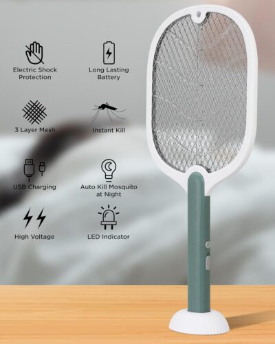 Protect your home effortlessly with the Weird Wolf 2-in-1 UV Light Mosquito Killer Racket, designed for powerful and convenient mosquito elimination. Use it in Manual Mode for active swatting or switch to Auto UV hands-free mode with the base stand for continuous mosquito trapping. The high-voltage central mesh kills insects instantly, while the lithium battery ensures long backup for daily use. Powered by USB Type-C charging, it offers universal compatibility and quick recharging. With a 3-layer shock-proof mesh and 6-month hassle-free warranty, this swatter provides safe, durable, and effective protection for your home.