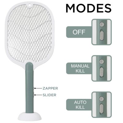 The Weird Wolf 2-in-1 Mosquito Racket offers Manual and Hands-Free Auto UV modes, long-backup lithium battery, and USB Type-C fast charging. With a 3-layer safety mesh and base stand, it works as both a fly swatter and UV mosquito zapper lamp.