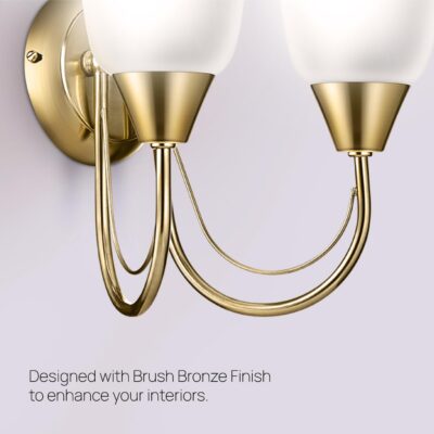 wipro BeuHome Double Wall Light BW05 | Premium Indoor Decorative Light with Frosted Glass | Contemporary Sleek Design | Surface Mounted Classic Wall Light | E27 (2H, Brush Bronze)