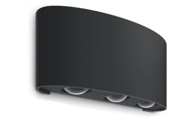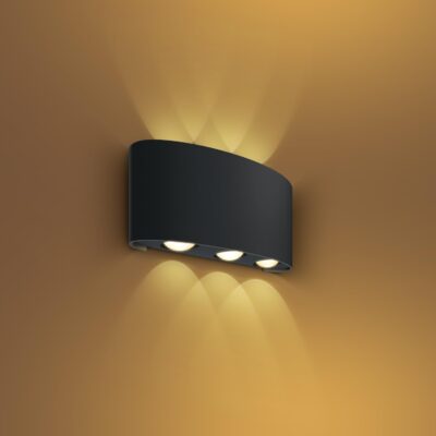 The two 1W LED rays cast balanced light upward and downward to highlight walls and architectural features.