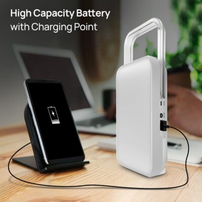 Wipro Safari Emergency Rechargeable LED Lantern offers powerful lighting with 122 individual LEDs, providing bright and uniform illumination. It is powered by a high-capacity 7200mAh battery, ensuring extended usage during power outages or outdoor activities. The lantern includes an adjustable brightness control feature for customizable lighting levels. A built-in mobile charging point adds extra utility, allowing you to charge your devices on the go. Designed for portability and durability, it is ideal for emergencies, camping, and daily use. This 15-watt lantern provides reliable, energy-efficient lighting in a compact design.